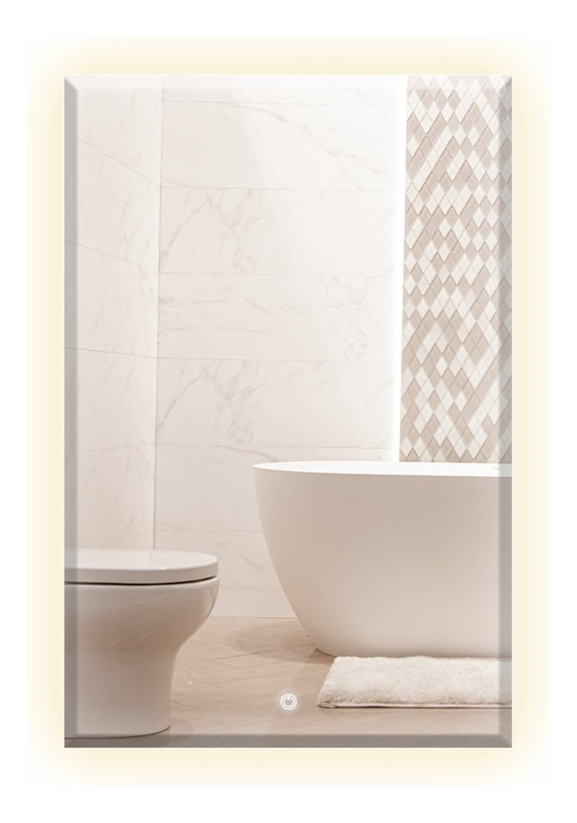Espelho Bisotê Led Retangular 70x50 Cm Iluminação de Fundo com Botão Touch Luxo