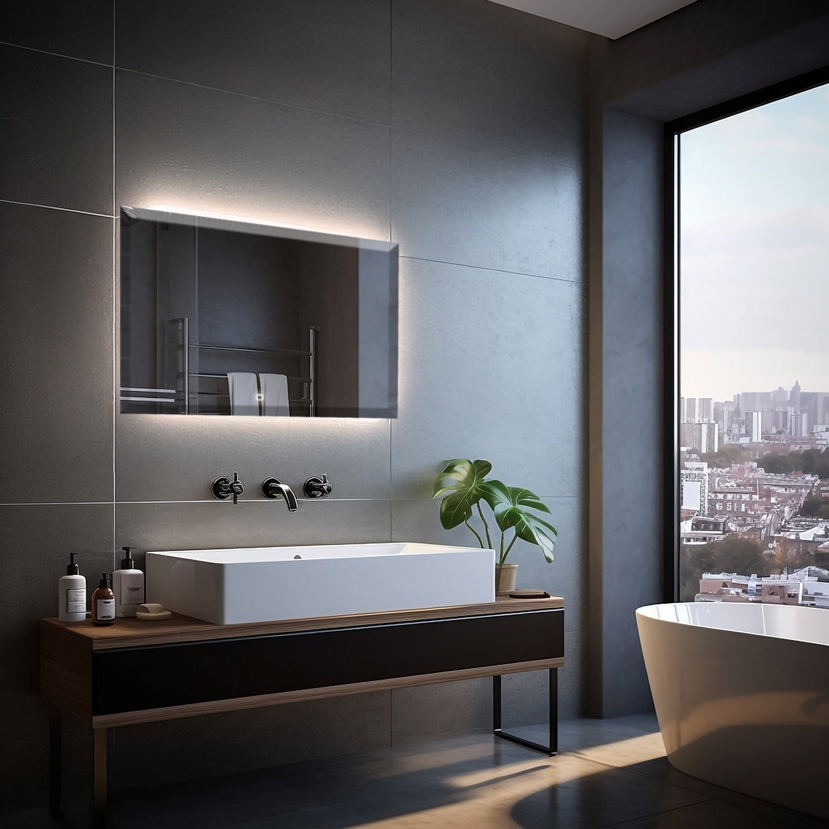 Espelho Retangular com LED Luz Indireta de Fundo Tamanho 80x60 cm Lapidado com Touch Screen Premium. Led a escolher nas Cores: Branco Frio ou Branco Quente ou Branco Neutro.