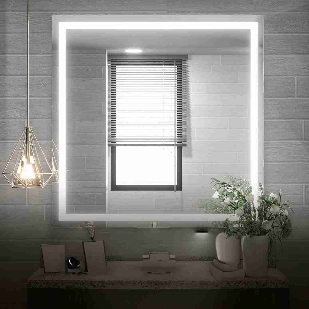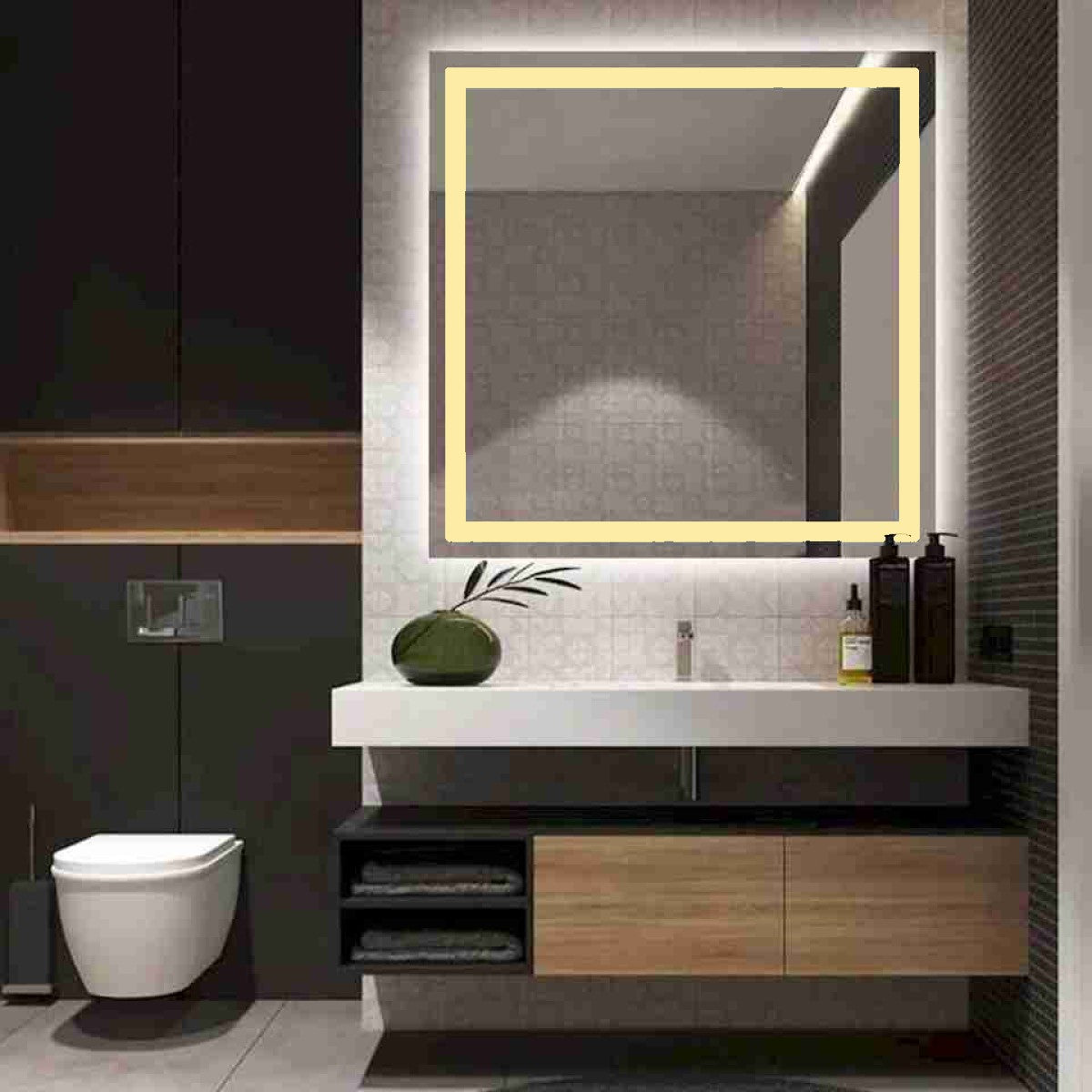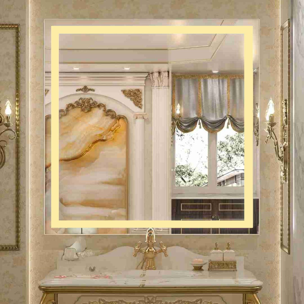 Espelho Quadrado com LED Jateado 120x120 cm Lapidado com Touch-Screen Premium. Led a escolher nas Cores: Branco Frio ou Branco Quente ou Branco Neutro.