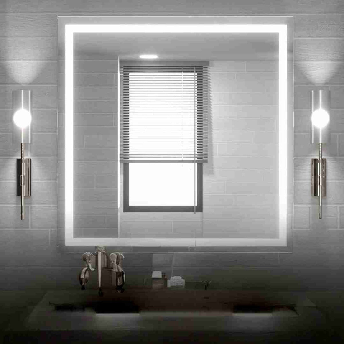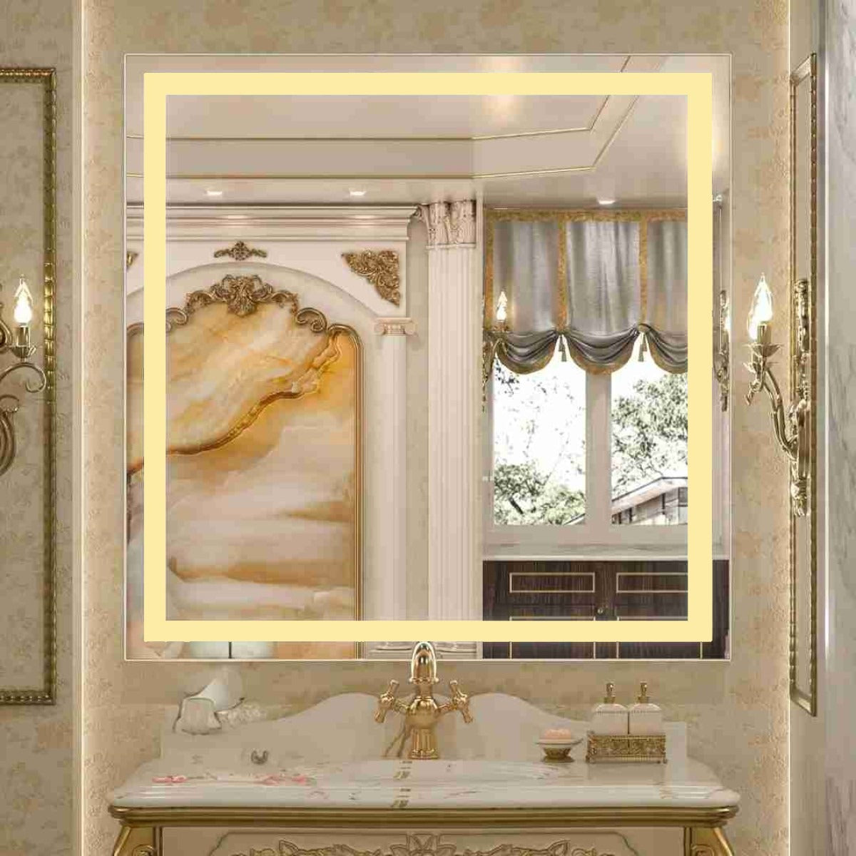 Espelho Quadrado com LED Jateado 60x60 cm Lapidado com Touch-Screen Premium. Led a escolher nas Cores: Branco Frio ou Branco Quente ou Branco Neutro.