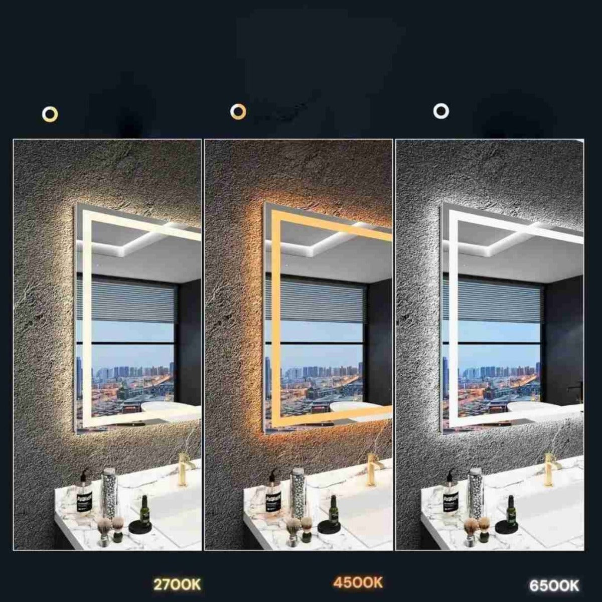 Espelho Quadrado com LED Jateado 90x90 cm Lapidado com Touch-Screen Premium. Led a escolher nas Cores: Branco Frio ou Branco Quente ou Branco Neutro.