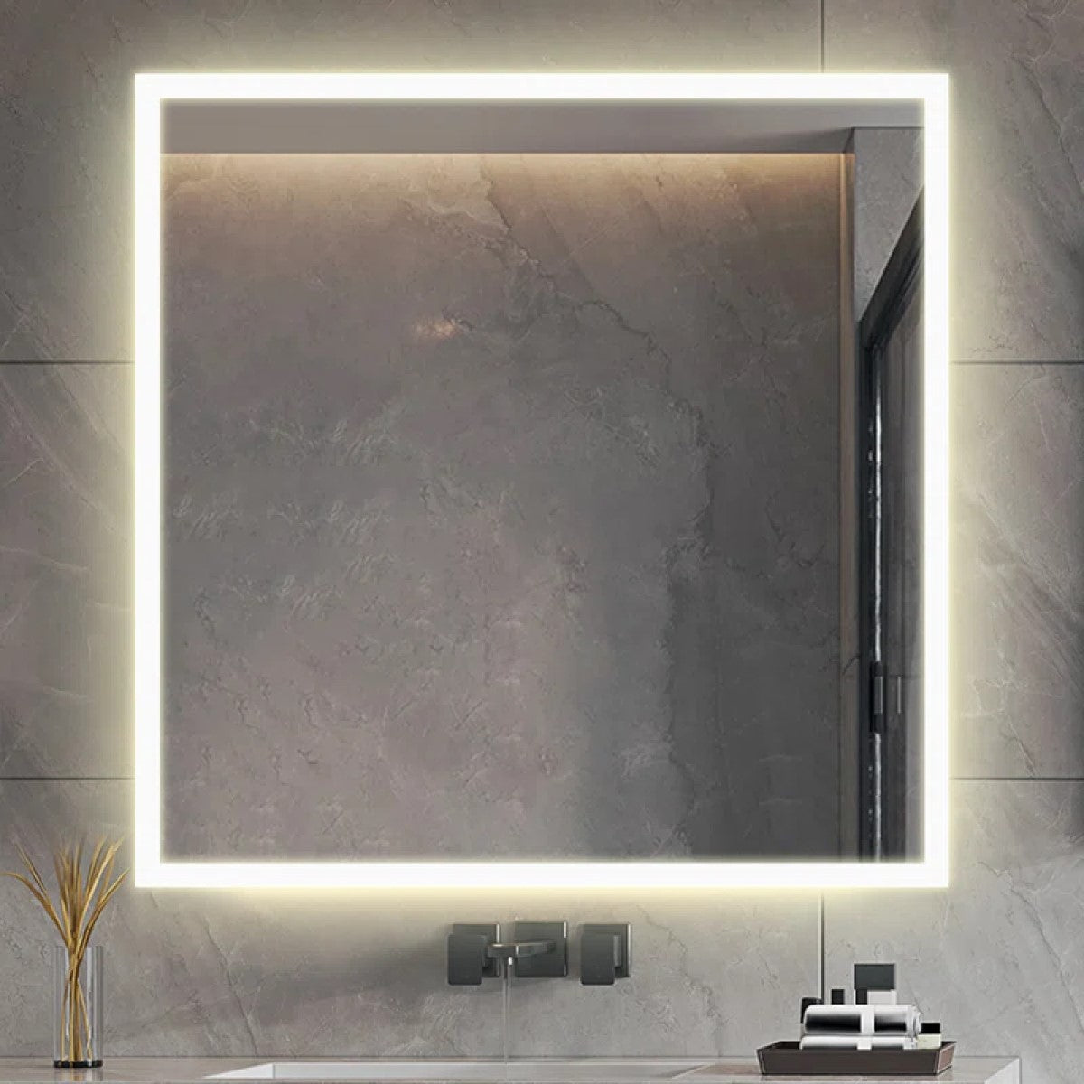 Espelho Quadrado Borda Infinita LED 120x120 Cm Lapidado Touch-Screen Premium Led a escolher nas Cores: Frio ou Quente ou Neutro.
