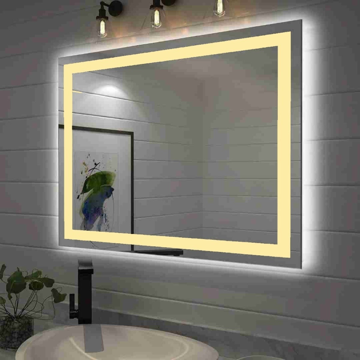 Espelho Retangular com LED Jateado 90x70 cm Lapidado com Botão Touch-Screen Premium. Led a escolher nas Cores: Branco Frio ou Branco Quente ou Branco Neutro.