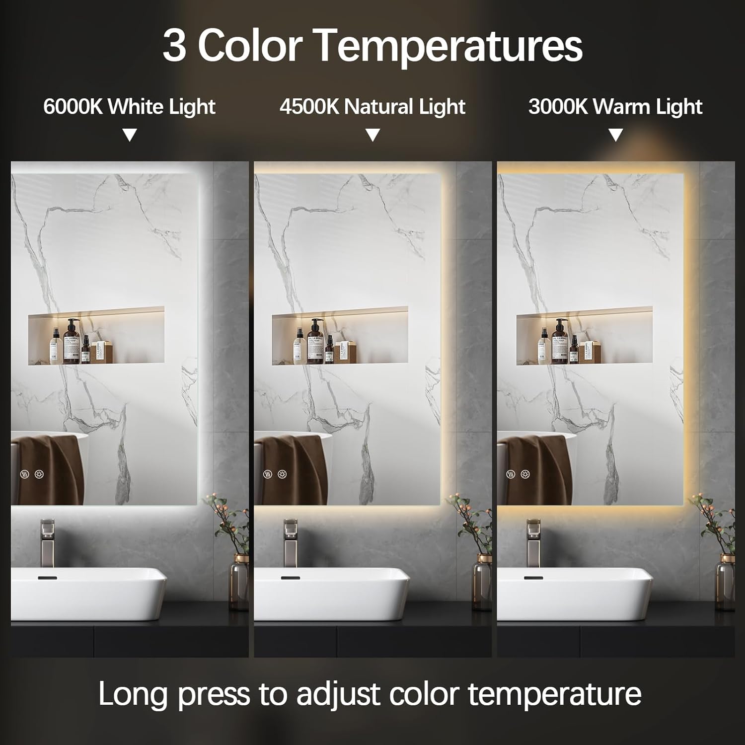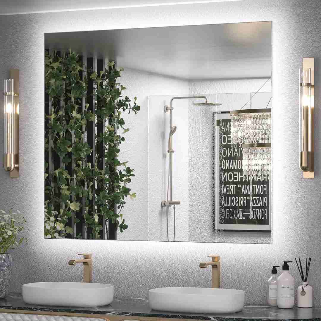 Espelho Quadrado com LED Luz Indireta de Fundo Tamanho 50x50 cm Lapidado com Touch Screen Luxo. Led a escolher nas Cores: Branco Frio ou Branco Quente ou Branco Neutro.