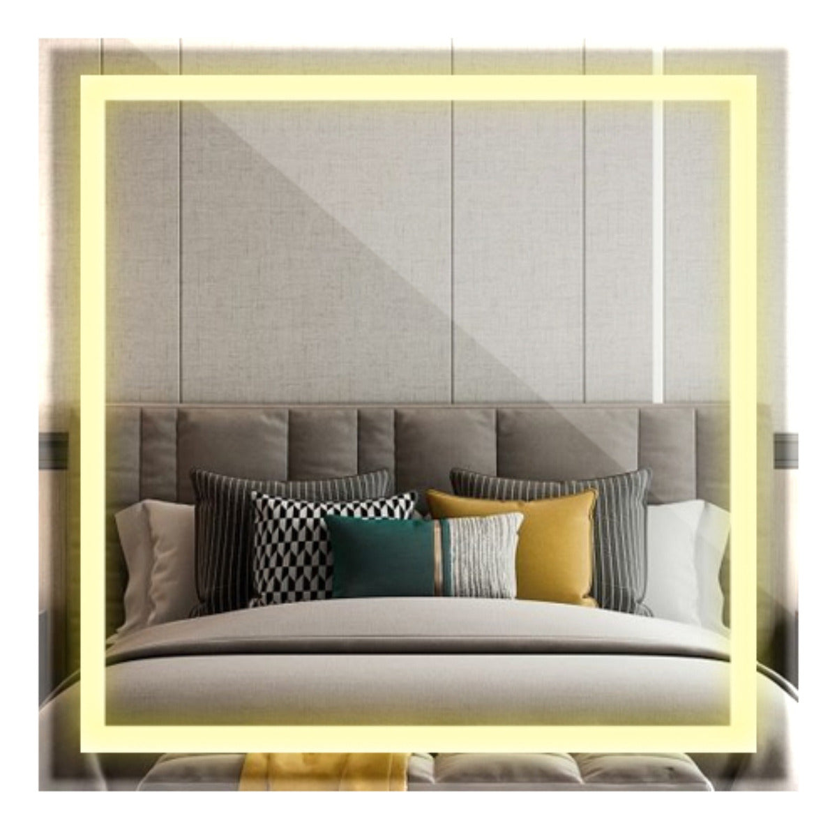 Espelho Quadrado com LED Jateado 100x100 cm Lapidado com Touch-Screen Premium. Led a escolher nas Cores: Branco Frio ou Branco Quente ou Branco Neutro.