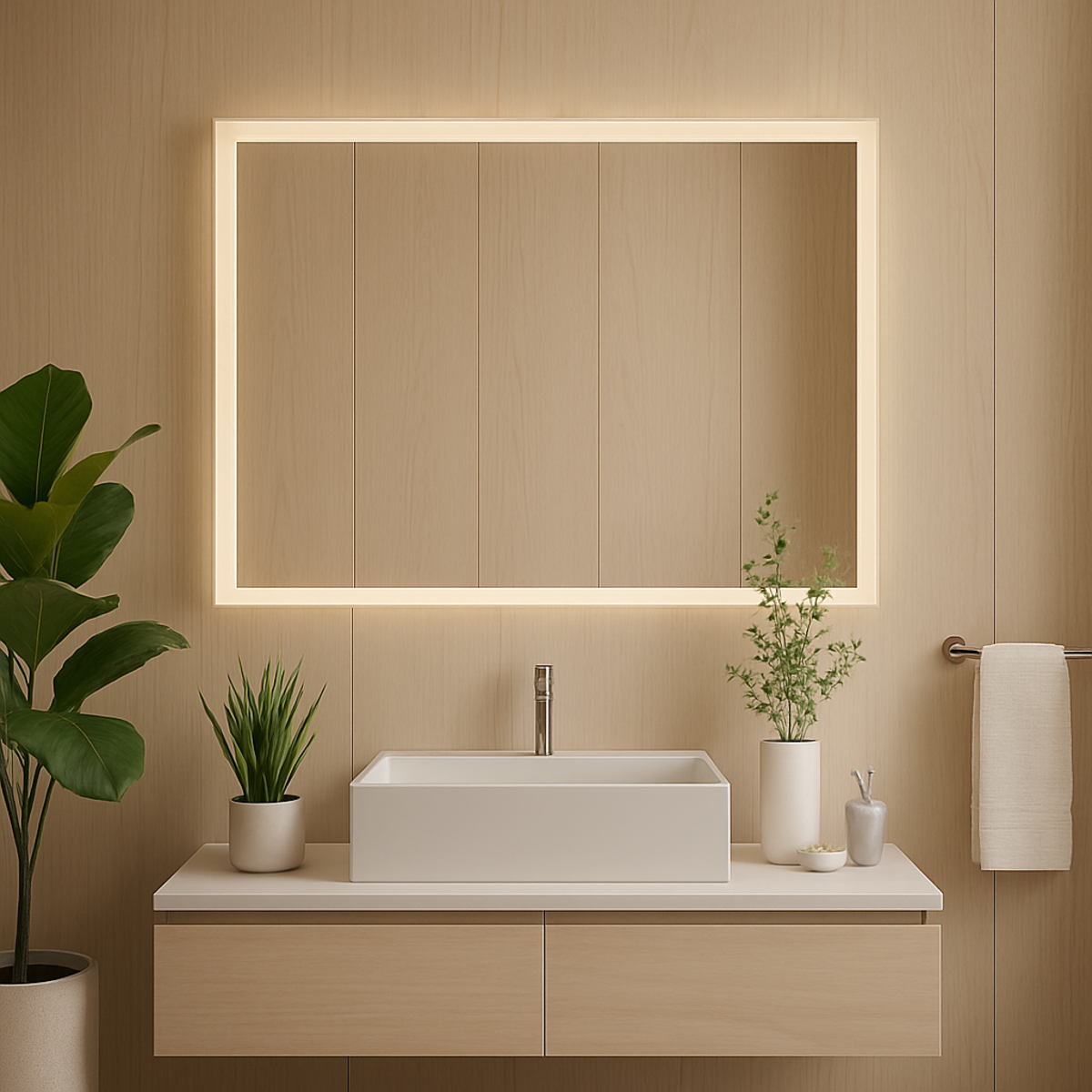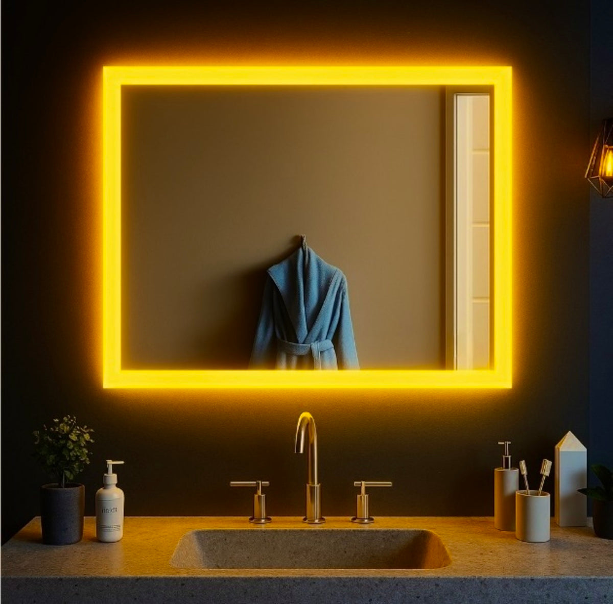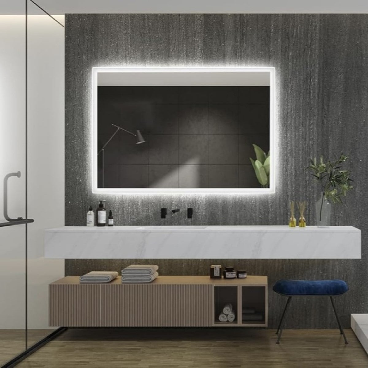 O espelho de borda infinita com LED é um modelo sofisticado que cria um elegante efeito visual de profundidade contínua, onde a iluminação embutida contorna toda a borda do espelho.F