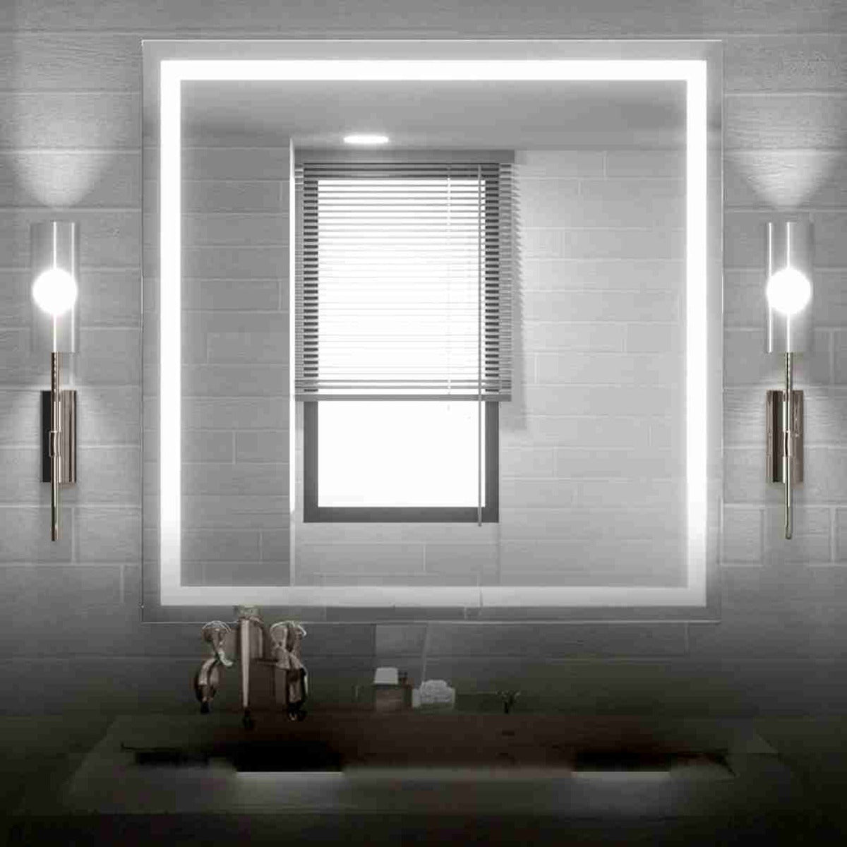 Espelho Quadrado com LED Jateado 70x70 cm Lapidado com Touch-Screen Premium. Led a escolher nas Cores: Branco Frio ou Branco Quente ou Branco Neutro.