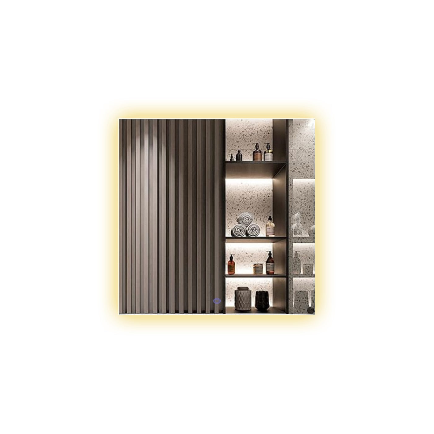 - Luz Indireta de Fundo (A Luz do Led Aparece entre o Recuo do Espelho e a Parede).