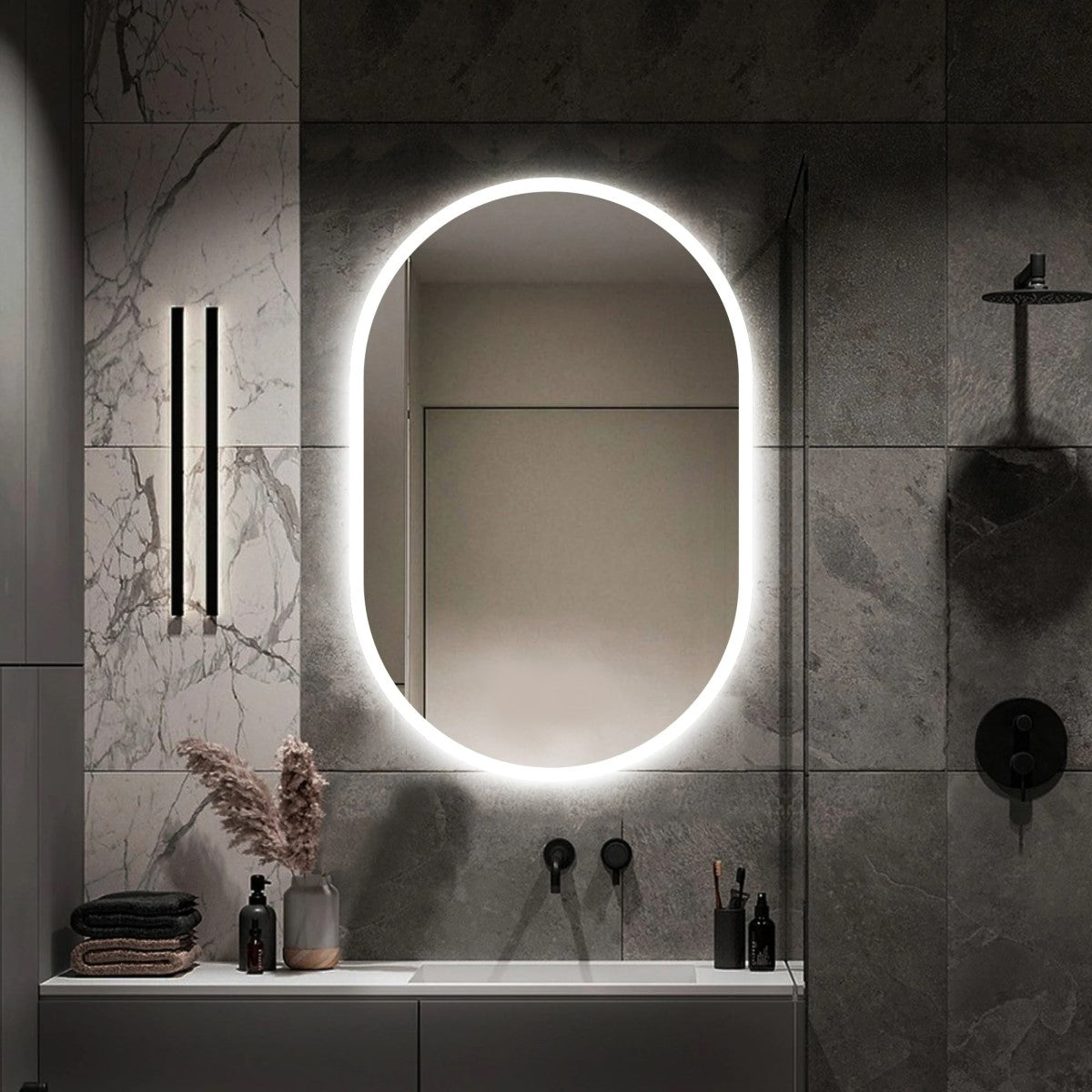 Espelho Oval Borda Infinita com LED 90x70 Cm Lapidado com Touch-Screen Premium Led a escolher nas Cores: Branco Frio, Branco Quente ou Branco Neutro.