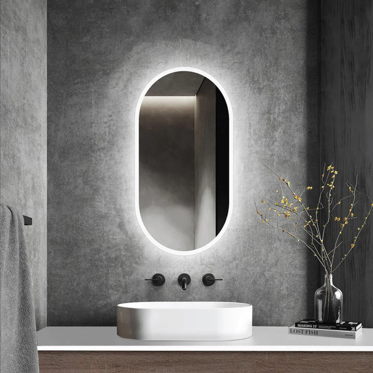 Espelho Oval Borda Infinita LED 120x60 Cm Lapidado Touch-Screen Premium Led a escolher nas Cores: Branco Frio, Branco Quente ou Branco Neutro.