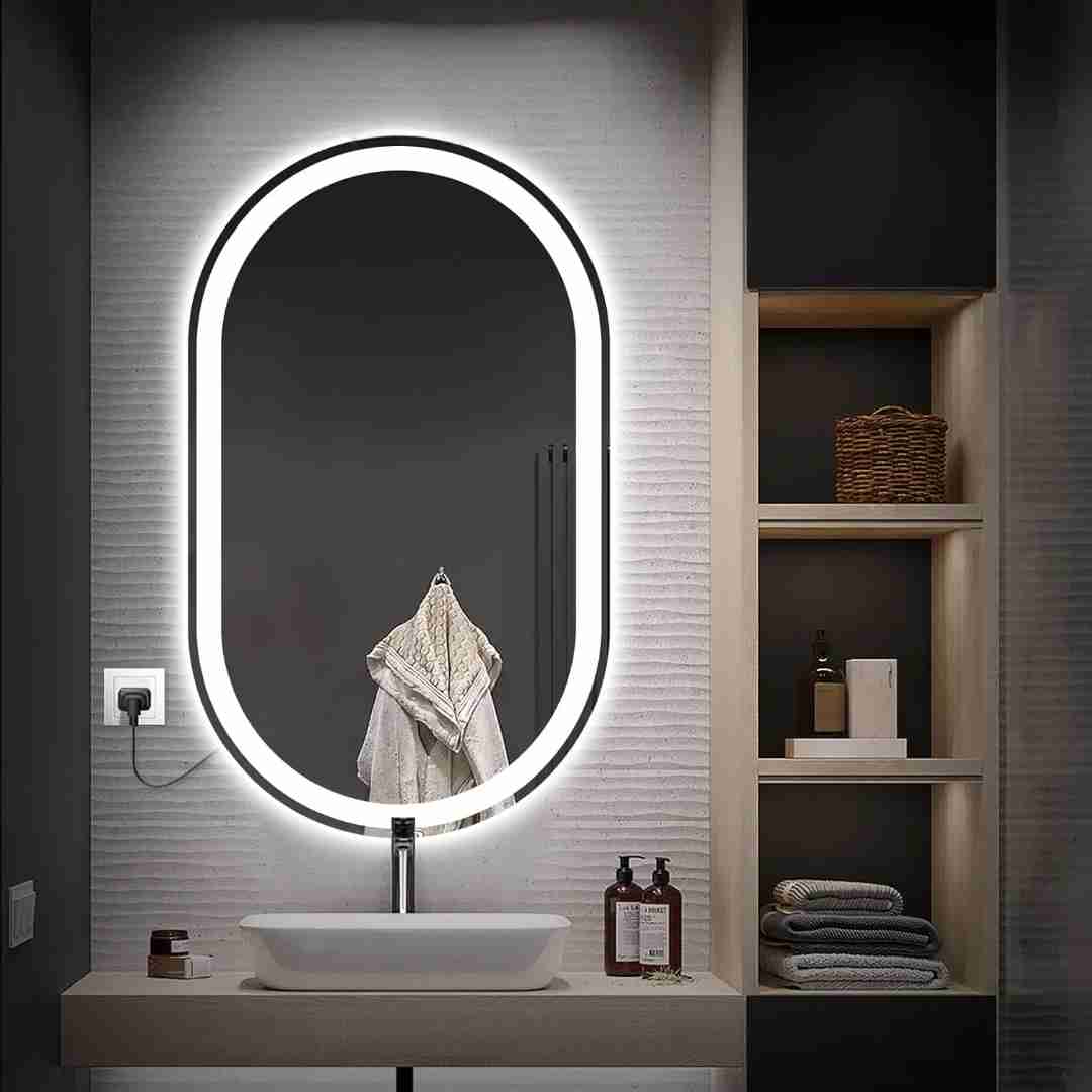 Espelho Oval Jateado com LED 140x70 cm Lapidado com Touch-Screen Premium Led a escolher nas Cores: Branco Frio, Branco Quente ou Branco Neutro.